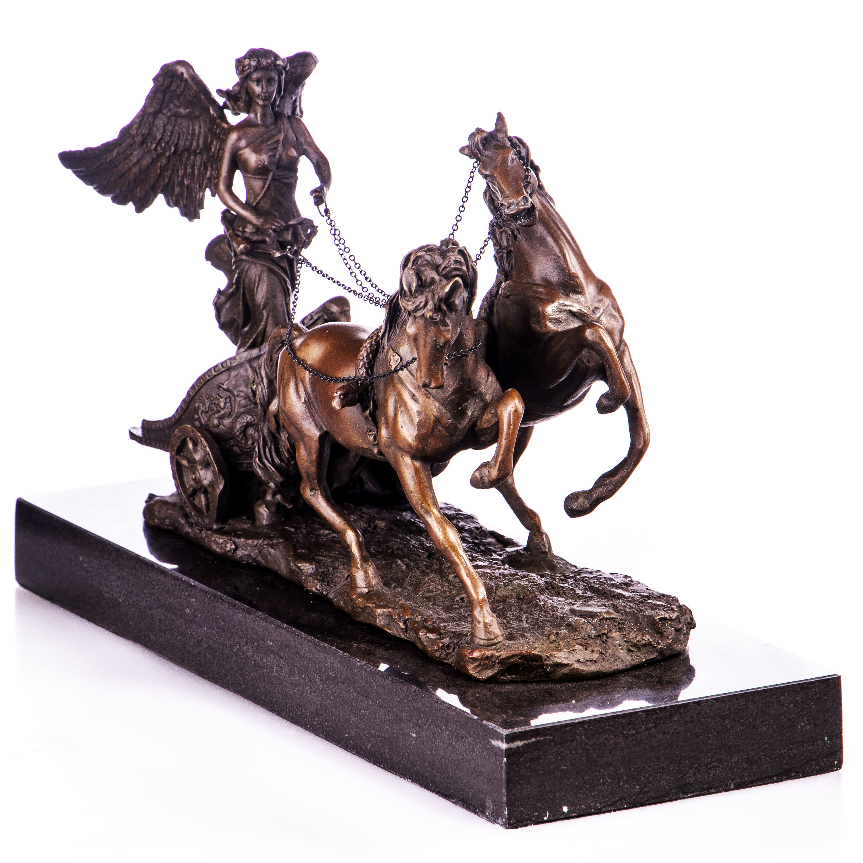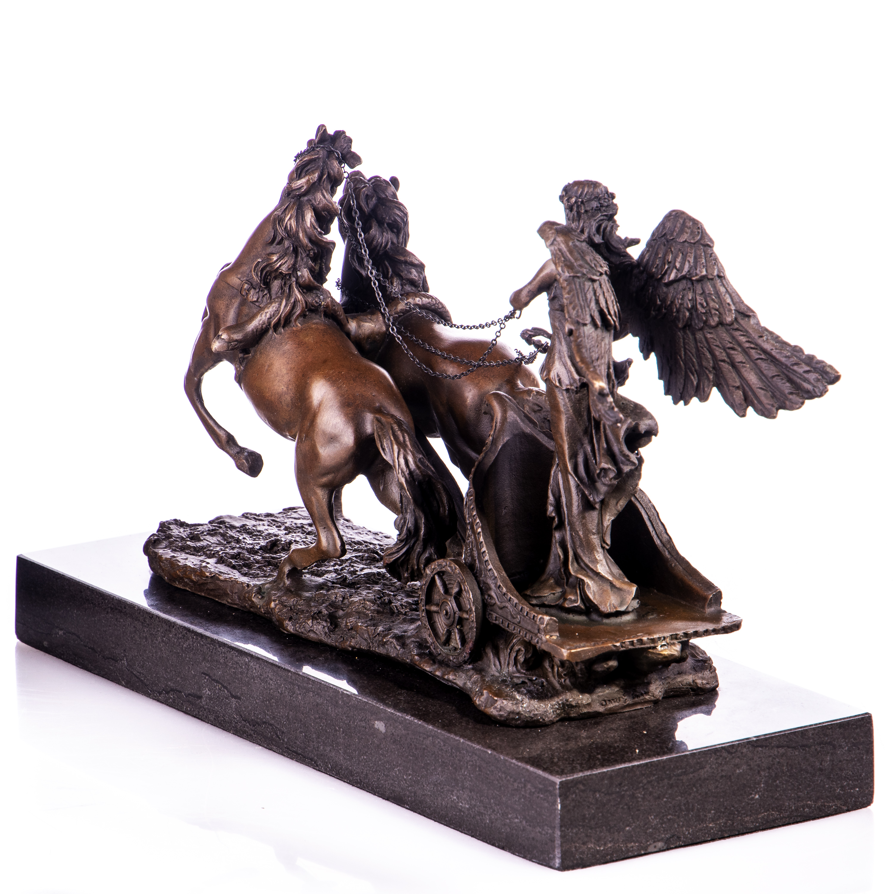 Bronzefigur Engel auf Streitwagen