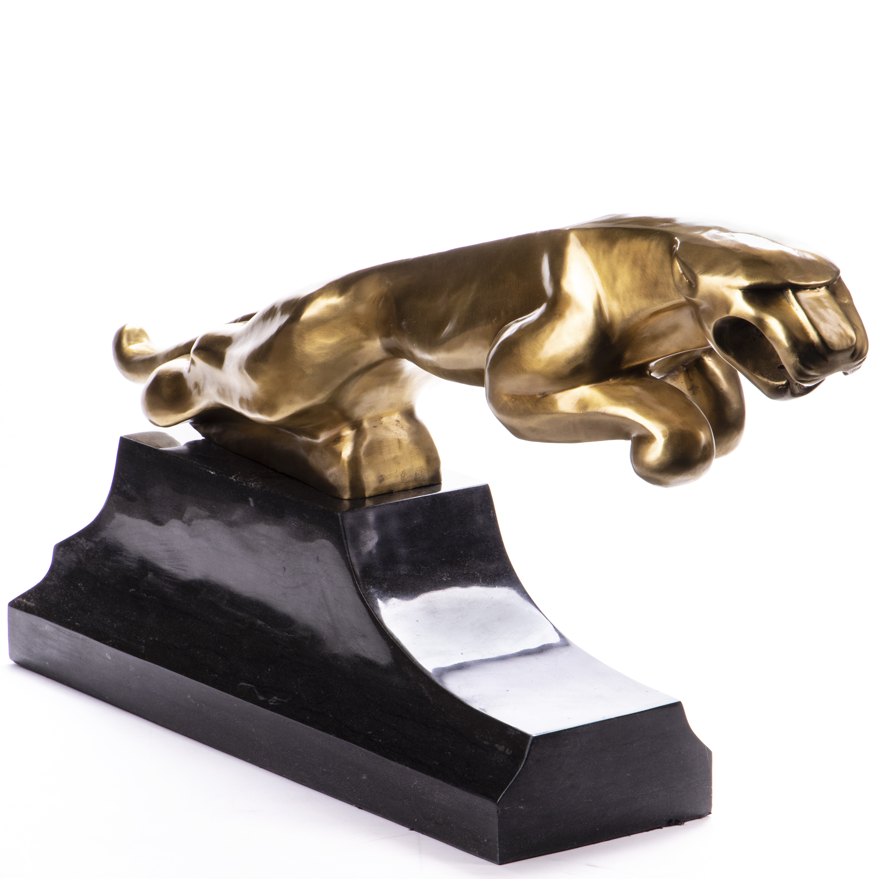 Polierte Art Deco Bronzefigur Springender Jaguar