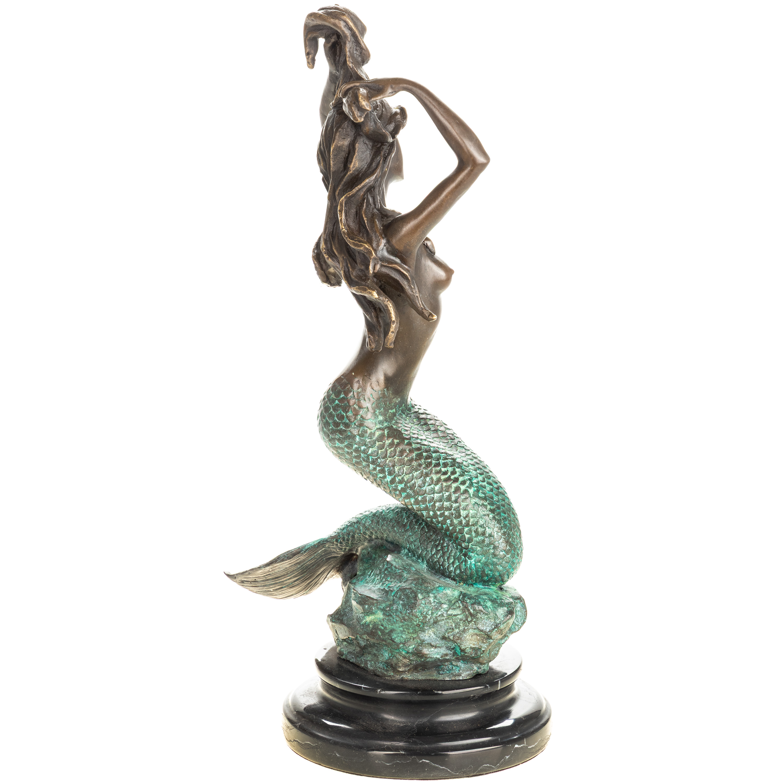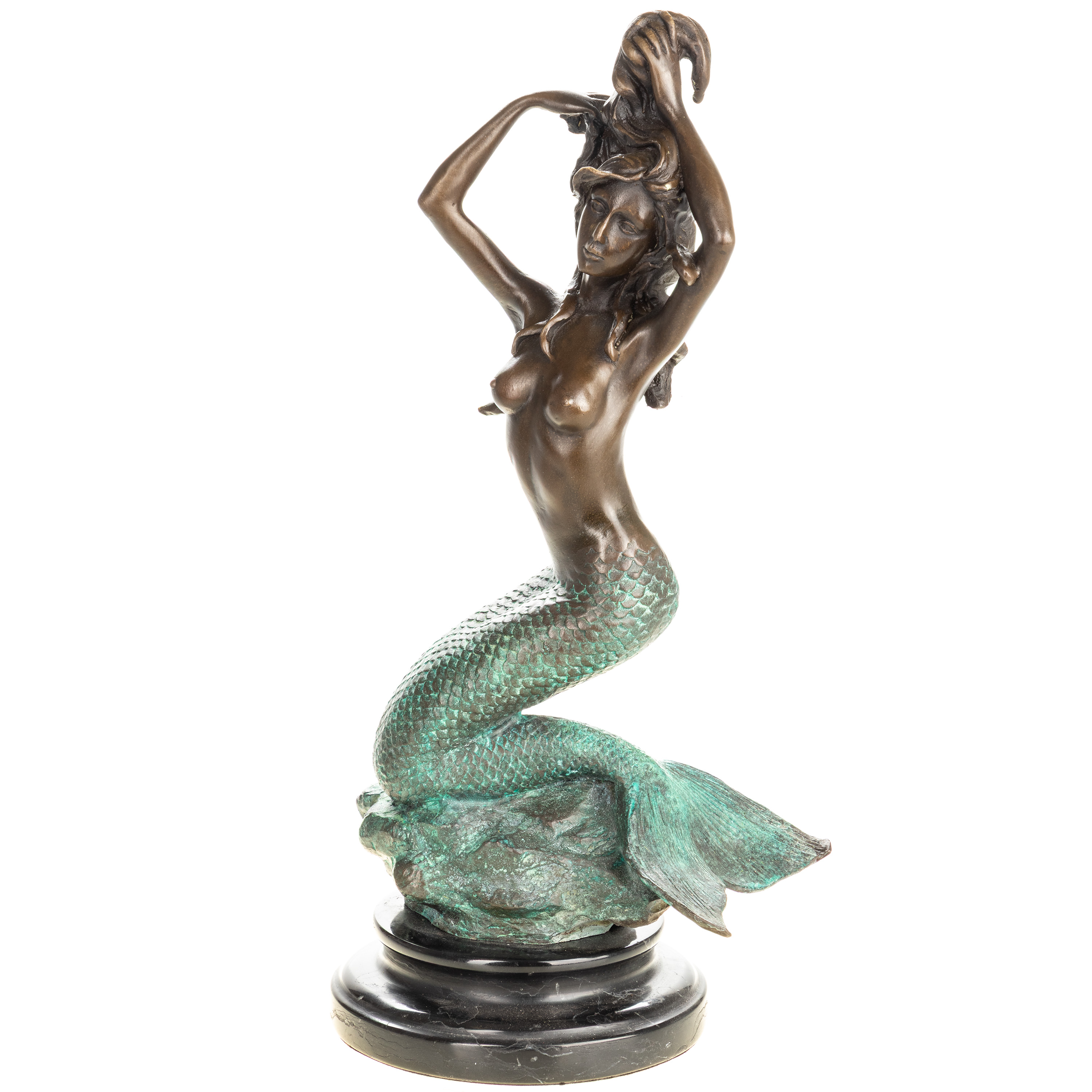 Grün Patinierte Bronzefigur Meerjungfrau