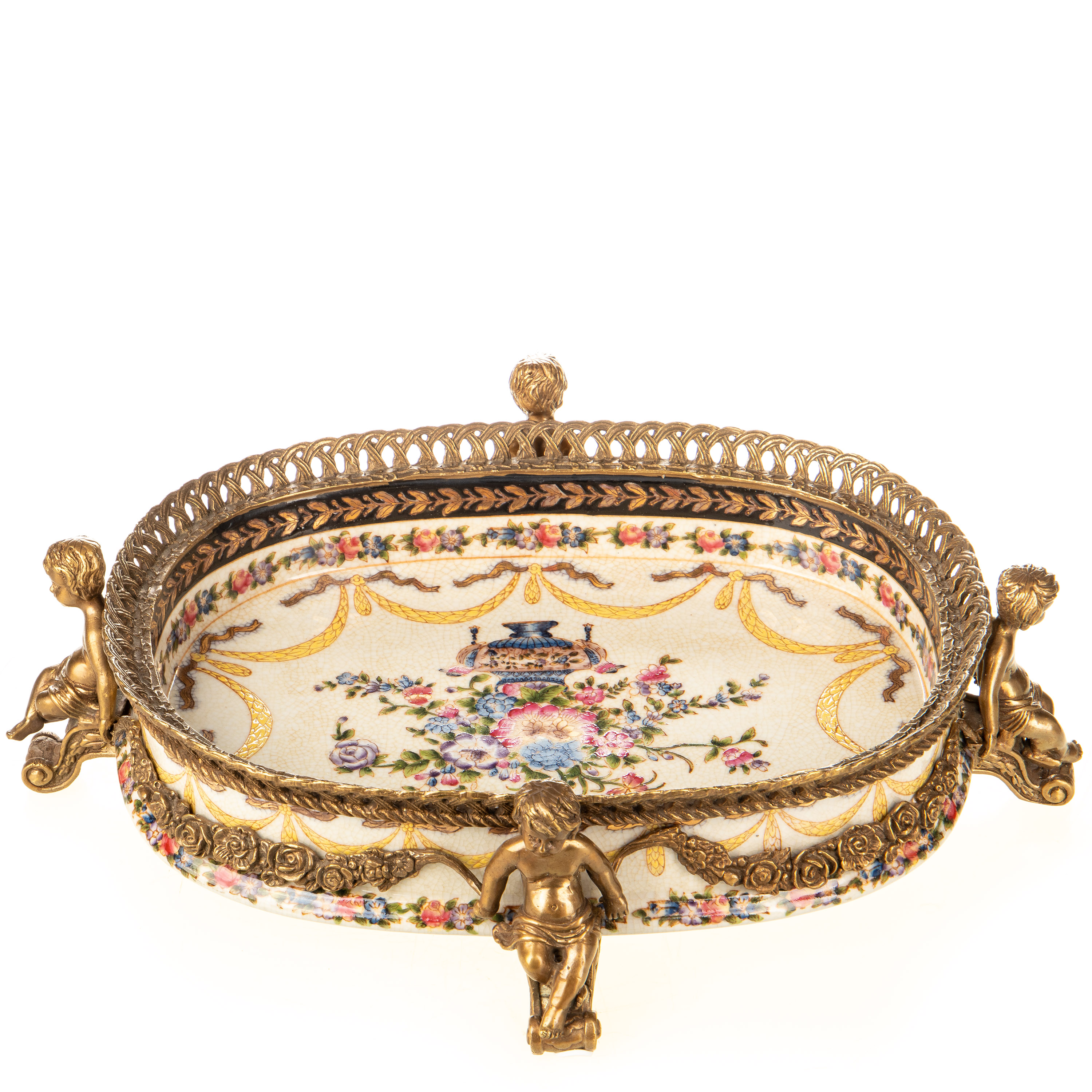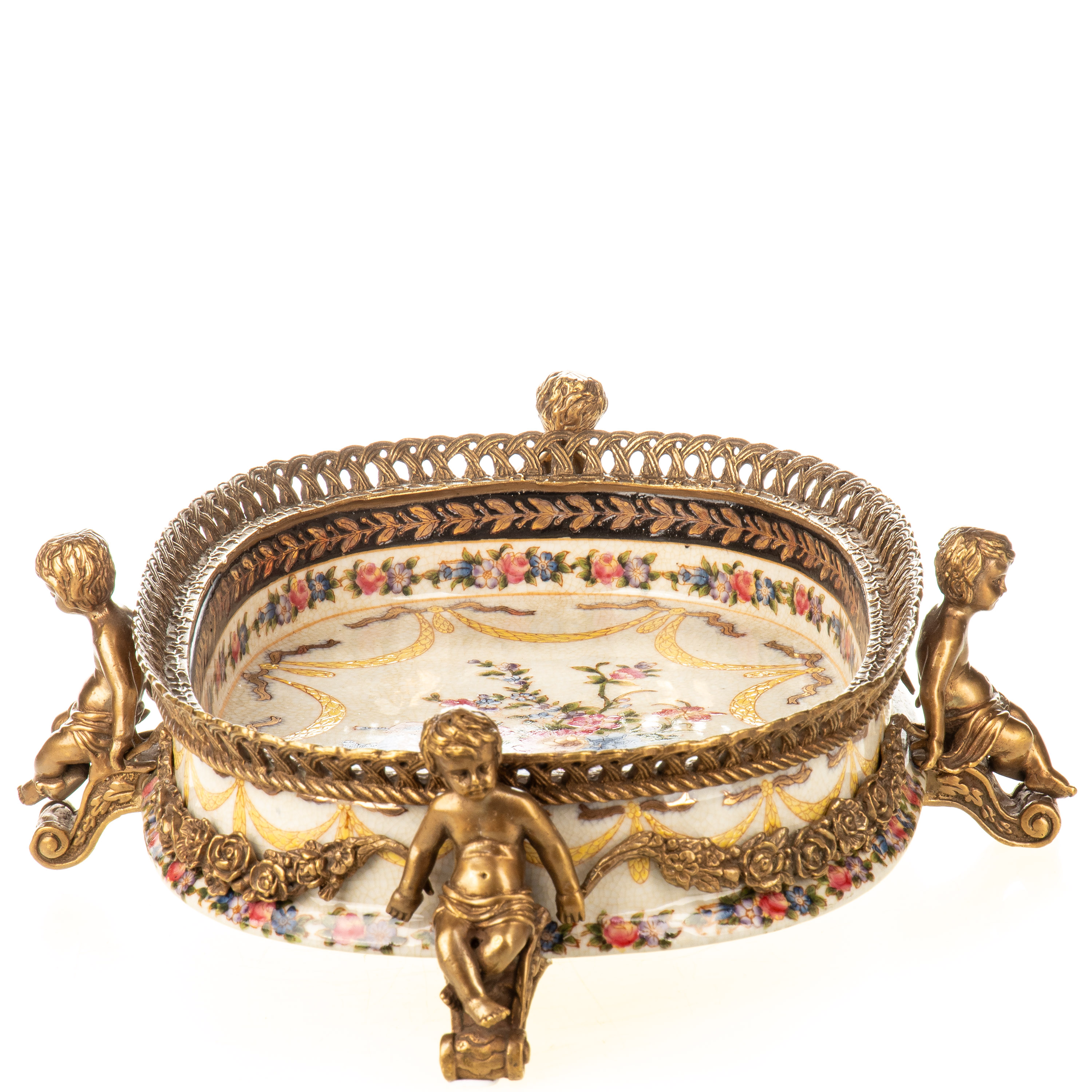 Porzellan mit Bronze Schale mit Engeln