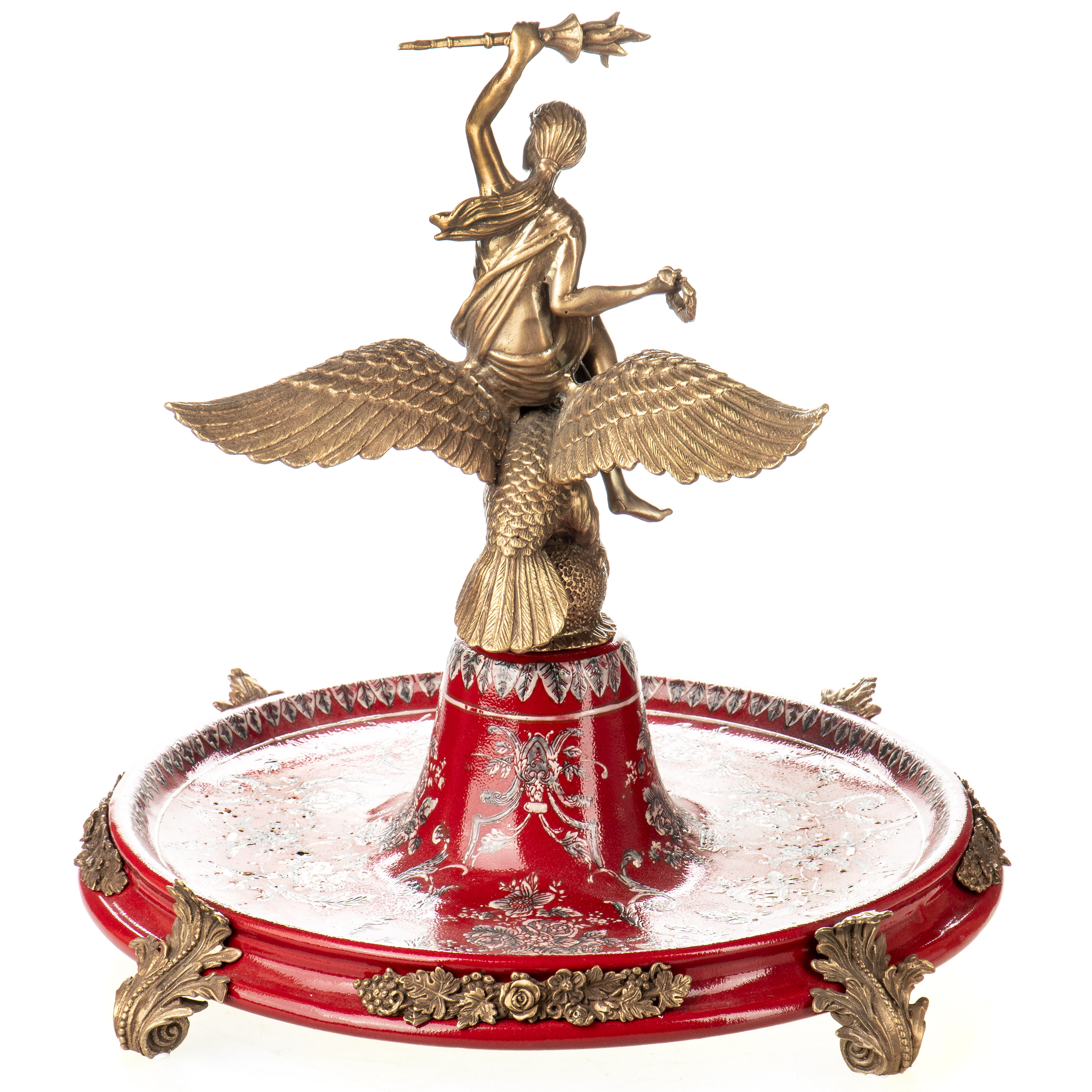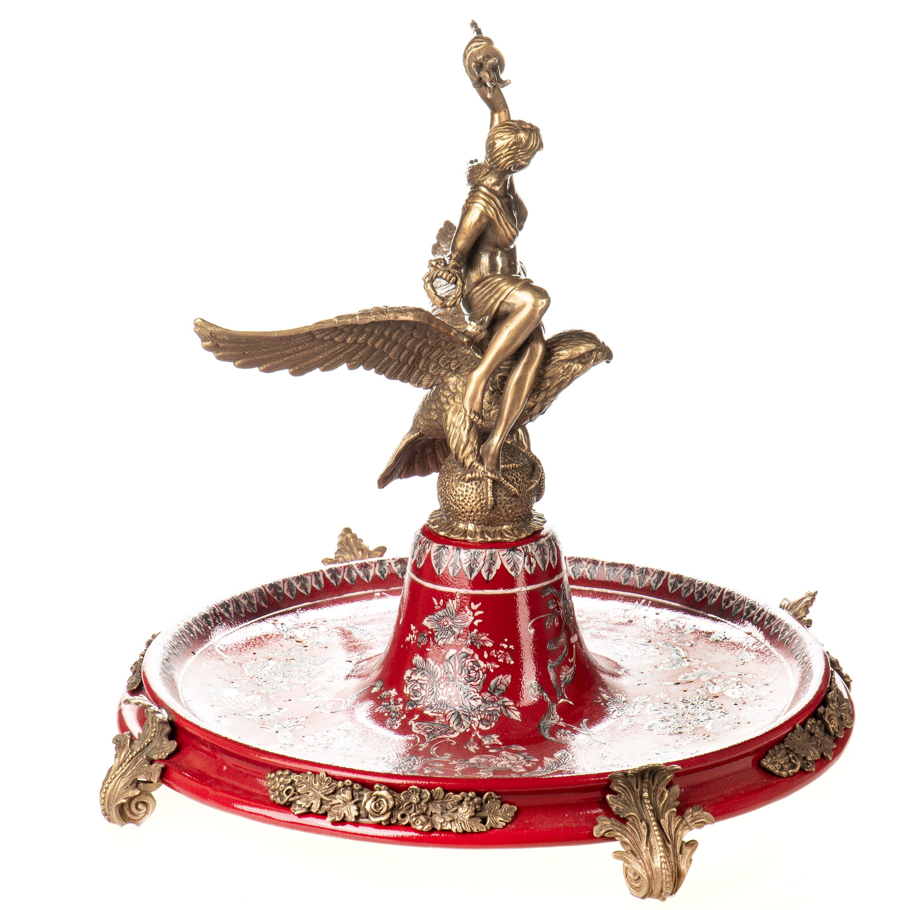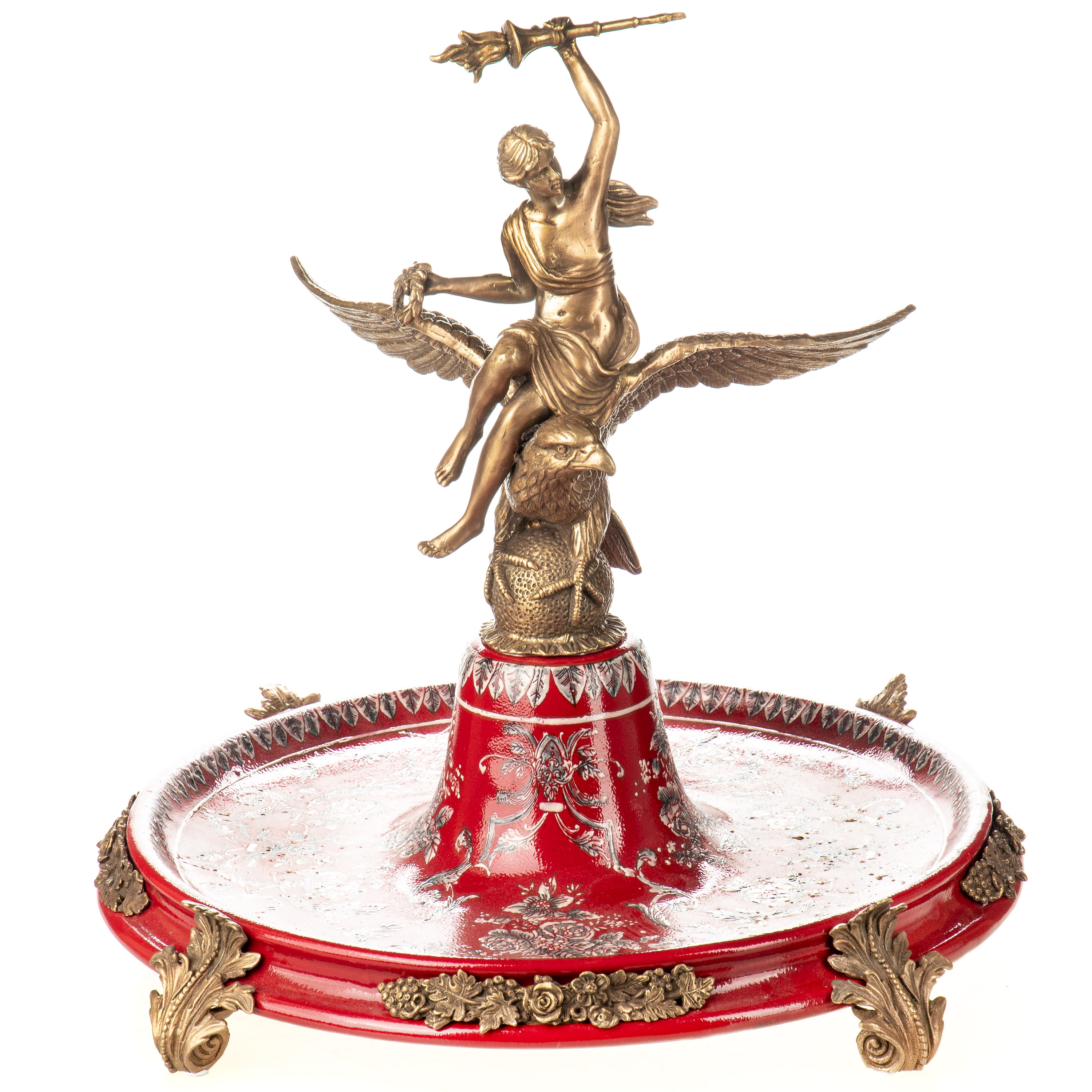 Porzellan mit Bronze Schale / Tafelaufsatz mit Frau auf Adler